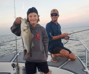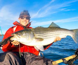 Captain Steve with a nice winter striper. Oooh, we can't…